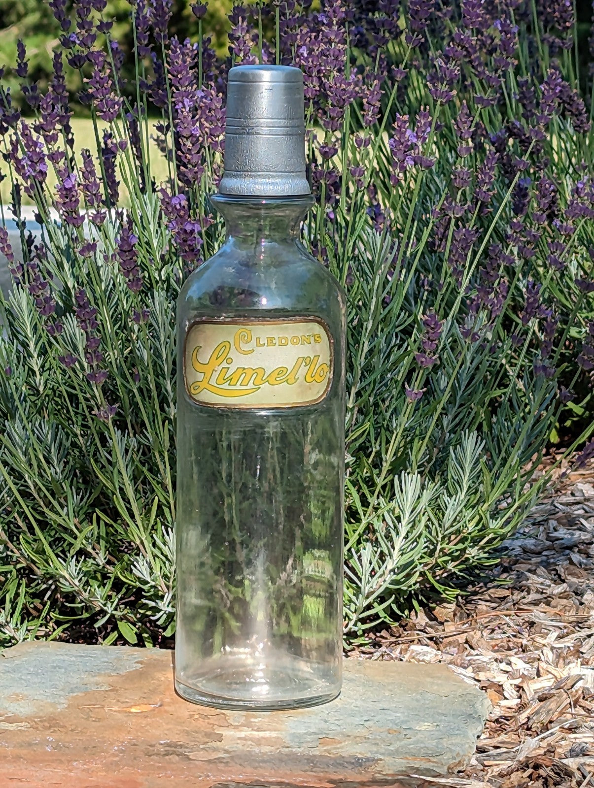 Offered for sale is this Antique Circa 1900 Cledon's Limel'lo "Label Under Glass" Soda Fountain Syrup Bottle with metal topper. The bottle is marked "I" on the bottom within a diamond shape - Illinois Glass Company from Alton, Illinois.