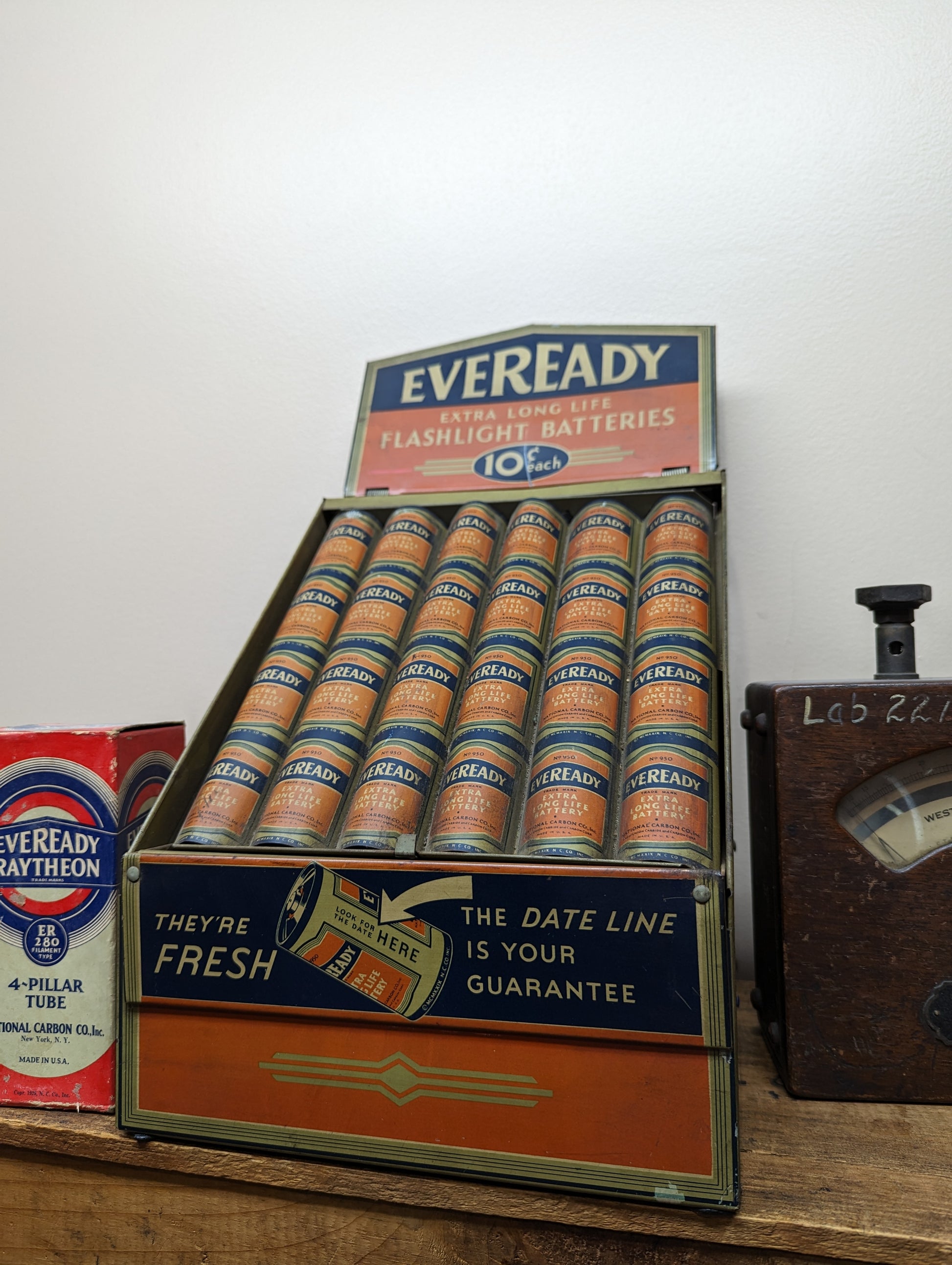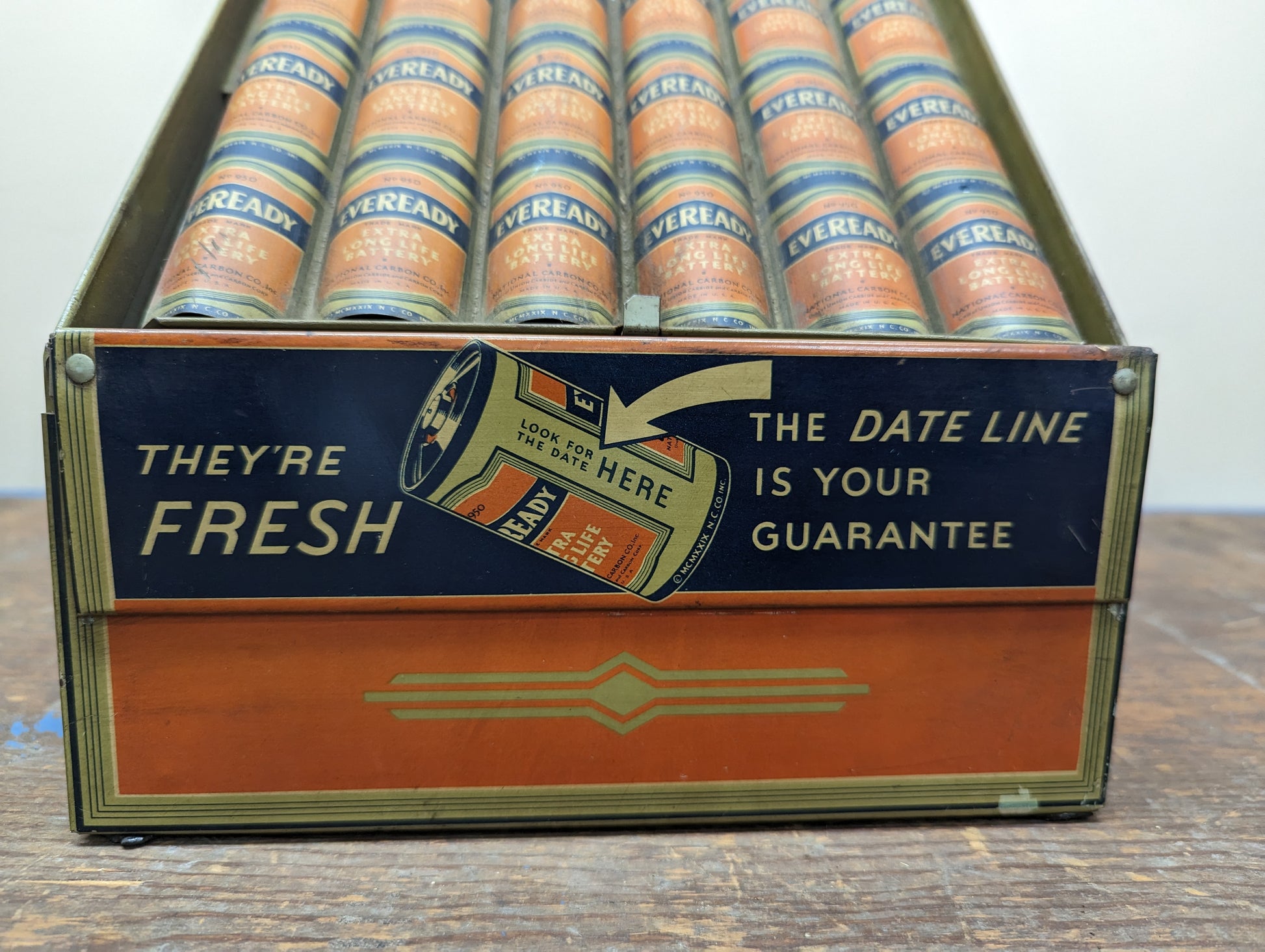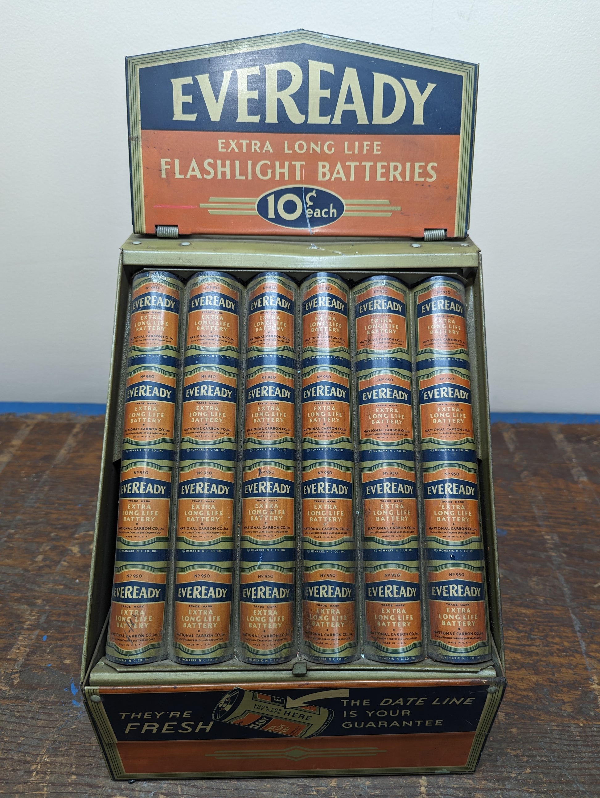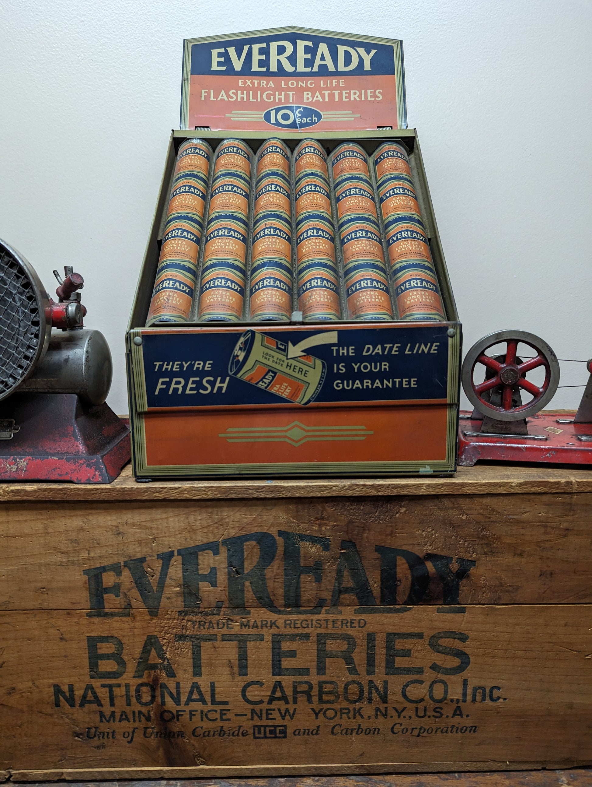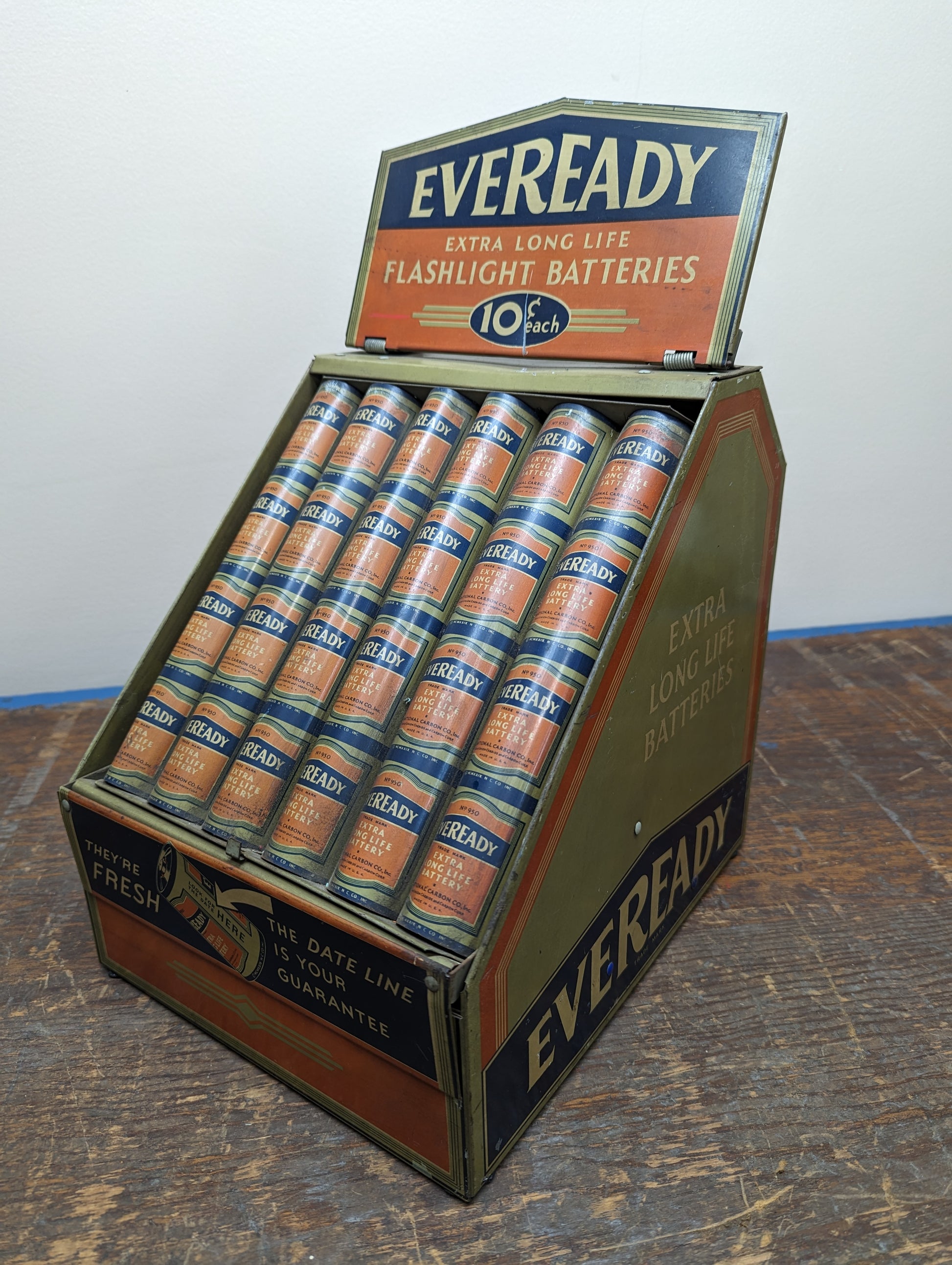 Offered for sale is this Vintage Eveready Flashlight Batteries Countertop Display.