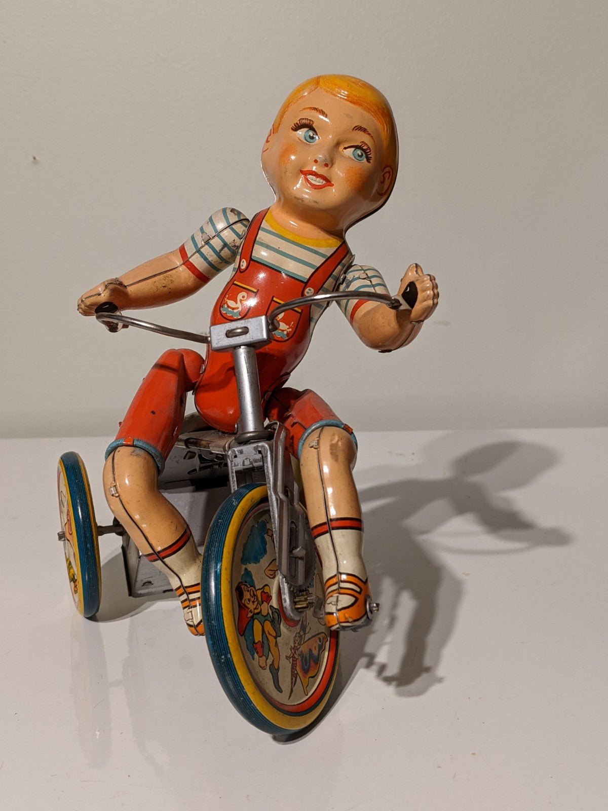 Unique Arts Kiddy Cyclist Tin Wind-Up Toy with Original Box